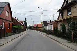 The village of Hajnówka, along with the Kozi Przeskok forest range (Polish: Uroczysko), belonged to the Dubiny State Estate at the time. The 1878 plan of Belovezhsky-Alexandrovski Volost, Pruzhansky Uyezd, Grodno Governorate,[7] clearly shows the current streets of Hajnówka: Stefana Batorego, Lipowa Street, which intersects it and merges with today's Krzywa Street, Wincentego Kolodzieja, and Warszawska Street, leading south towards Kleszczele. From the east, it led to the village of Lipiny. The housing estates along these streets, as well as Kozi Przeskok and Mazury, are the oldest districts of the city.[8] At that time, however, there was no present-day 3 Maja Street or direct road to Bielsk Podlaski. There was also no railway line. The road connection between Hajnówka and Bielsk ran through Dolne, Nowe Berezowo, Dubicze Osoczne and Orli. The property of the Hajnówka Forest Guard was located on present-day Bartorego Street.[9] The city's spatial layout was determined and developed by the industrial plants that established their presence, primarily during the German occupation during World War I. Between 1894 and 1906 the village was connected with the world by a railroad linking Bielsk Podlaski and Siedlce with Wołkowysk. Hajnówka became a minor transport junction and in 1900 a road was built between Białowieża and Bielsk Podlaski.
