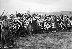 Haka is a form of indigenous dance that encompasses multiple ceremonial purposes in Māori culture. As Nathan Matthew explains, "it is a posture dance accompanied by chanted or shouted song... One of the main characteristics of haka are that actions involving all parts of the body are used to emphasise the words."[17]