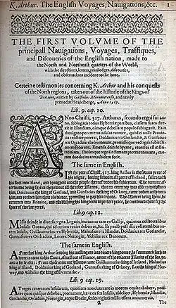 - ^ Hakluyt, Richard (1599). Goldsmid, Edmund (ed.). The Principal Navigations, Voyages, Traffiques and Discoveries of the English Nation (1885 Fourth ed.). London and Aylesbury: Hazell, Watson & Viney Limited.