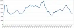 Halcombe had its annual returns of traffic recorded, as did Greatford to the north and Feilding to the south.[31] Passenger numbers grew initially and during the World Wars, before tailing off towards 1950, as shown in the graph and table below.