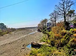 Haldwani is located at 29°13′N 79°31′E / 29.22°N 79.52°E,[23] in the Nainital district on the right bank of the Gaula River. Geologically, Haldwani is settled on a piedmont grade (called Bhabhar) where the mountain rivers go underground to re-emerge in the Indo-Gangetic plain. The Haldwani Bhabhar stretches horizontally, surrounded by the regions of Ramnagar and Tanakpur and lies between the Shivalik hills to the north and the Terai region of Rudrapur to the south. The average land elevation is 424 m (1,391 ft) above sea level.[24] According to the Bureau of Indian Standards, Haldwani falls under seismic zone 4, in a scale of 2 to 5 (in order of increasing vulnerability to earthquakes).[25][26]: 27