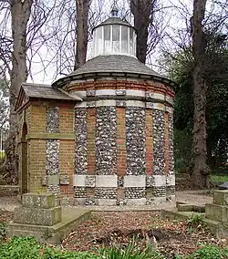 Ownership remained in the Hales family until 1880, when it was sold to exiled Jesuits from Lyon and turned into a college.[3] The college was popular with the French nobility who sent their sons there to learn away from political persecution in France.[5] In 1928 the estate was sold and the house was demolished in the following years. Its chapel (originally a dovecote) and the burial ground still remain, located by the Tenterden Drive layby.[2]