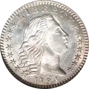 The half disme (pronounced "deem") was one of the first coins to be produced by the newly created US Mint. At least 1,500 half dismes struck in 1792, which would technically make them the first business strike coin to be minted by the Mint.[3] However, its status as such is disputed, with the Mint recognizing the 1793 Chain cent as such.[1][4]