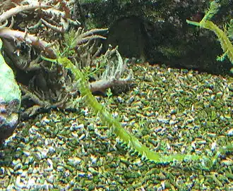 The ribboned pipefish[1] (Haliichthys taeniophorus), ribboned pipehorse or ribboned seadragon, is a species of pipefish found along the coast of northern Australia (Shark Bay to Torres Strait) and New Guinea (both West New Guinea and Papua New Guinea) in habitats ranging from shallow and weedy to deeper and sandy bottoms down to depths of 16.5 m (54 ft).[1] This species grows to a total length of 30 cm (12 in). Their colors can range from greenish yellow to brownish red.[2] This species is the only known member of its genus.[3]
