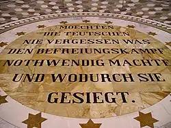 The following dictum by King Ludwig I, embedded into the marble floor, commemorates the occasion of the construction of the Befreiungshalle: