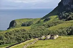 The poem is named after a deserted township located on the south-eastern corner of the Hebridean island of Raasay, the poet's birthplace. The settlement of Hallaig depopulated between 1852 and 1854 under George Rainy and since MacLean's relatives were affected,[2] the author decided to evoke the community of this abandoned village in his poem.[3] It is a reflection on the nature of time and the historical impact of the Highland Clearances leaving an empty landscape populated only by the ghosts of the evicted and those forced to emigrate.