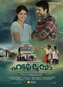 Hallelooya (or Hallelujah) is a 2016 Malayalam-language film, directed by Sudhi Anna in his feature film debut, starring Narain and Meghana Raj in the lead roles.[2][3] It also features Sudheer Karamana, Sunil Sukhada, K. B. Ganesh Kumar, Sasi Kalinga, Saju Navodaya and Master Eric in significant roles.[4] The film, produced by K. M. Surendran under the banner of Barking Dogs Seldom Bite Films, was released in May 2016.[5]