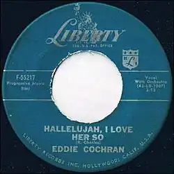 "Hallelujah, I Love Her So" is an adaption of the Ray Charles song by Eddie Cochran. It was released as a single on Liberty Records in November 1959.