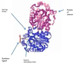 - ^ Los GV, Encell LP, McDougall MG, Hartzell DD, Karassina N, Zimprich C, et al. (June 2008). "HaloTag: a novel protein labeling technology for cell imaging and protein analysis". ACS Chemical Biology. 3 (6): 373–82. doi:10.1021/cb800025k. PMID 18533659.
