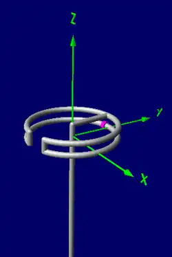 Although also a resonant antenna, the halo antenna is distinct from the full-wave loop antenna, which is almost exactly double its size for the same operating frequency. In the case of the halo antenna, each half is about a quarter wavelength long and ends with a current node (zero current and peak voltage) at the break. Self-resonant loops with a perimeter of one full wavelength have a radiation pattern which peaks perpendicular to the plane of the loop (along the z axis, in the diagram below) but falls to zero within the plane of the loop, quite opposite the radiation pattern of a halo antenna. Thus, despite the superficial similarity, these two antenna types behave fundamentally differently.