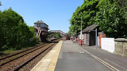 The station's signal box, constructed in 1901 by the North Eastern Railway, was taken out of use in 1993, following re-signalling to colour lights.[6] It was replaced by a smaller prefabricated signal box, which is located around 145 yards (133 m) to the west of the former.