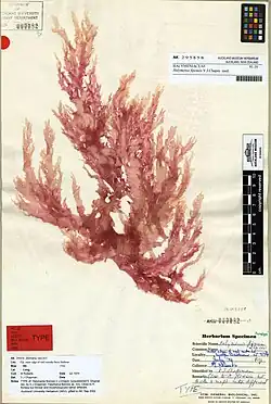 - ^ Kamiya, M., Lindstrom, S.C., Nakayama, T., Yokoyama, A., Lin, S.-M., Guiry, M.D., Gurgel, F.D.G., Huisman, J.M., Kitayama, T., Suzuki, M., Cho, T.O. & Frey, W. 2017. Rhodophyta. In: Syllabus of Plant Families, 13th ed. Part 2/2: Photoautotrophic eukaryotic Algae. (Frey, W. Eds), pp. [i]–xii, [1]–171. Stuttgart: Borntraeger Science Publishers