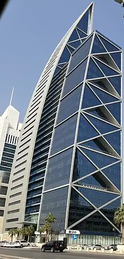 Hamad Tower (Arabic: برج حمد) is a commercial skyscraper in the Al-Olaya district of Riyadh, Saudi Arabia,[3][4] located next to the Al-Faisaliah Tower.[5] With a height of 163 meters (535 ft), it is the 20th tallest building in Riyadh and 34th tallest in Saudi Arabia.[6] It was built between 2010 and 2016 and is one of the prominent landmarks of the city.[7] The tower is named after Sheikh Hamad bin Saleh al-Hamoudi and hosts the offices of multiple multinational firms, including Atkins, Holman Fenwick Willan, Systra, Samsung and Lenovo.