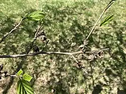 Hamamelis virginiana can be distinguished from the related Hamamelis vernalis by its flowering in fall, not winter.[2][6]