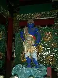 In Buddhism, there is a tradition that the golden bow and arrow held by Umāraka, one of the Four Yaksha who follow the Blue-Faced Vajra, is the origin of hamaya, and a hamaya named after this, ryūjin hamaya (龍神破魔矢; lit. dragon god hamaya), is sold at Rinnō-ji in Nikkō, where the Four Yaksha are enshrined.[1]