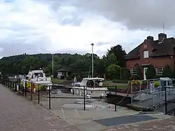 Hambleden Lock is a lock with a long weir situated on the River Thames in England, about 2 miles downstream of Henley Bridge. The lock is on the Berkshire bank between Aston and Remenham. Built by the Thames Navigation Commission in 1773, the lock is named after the village of Hambleden, a mile (1.5 km) to the north.