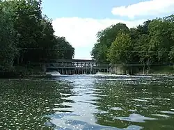 "Breaches in the banks at Stadbury (Hamhaugh Island) were repaired in the 18th century by the City of London authorities, who were responsible for...[the river downstream of the north-west of Staines]. They also had occasion to remove illegal fish-weirs: there had been a weir at Shepperton in 1086 and one is mentioned in the 14th century."[1]