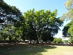 Arbor Day was celebrated at Hamilton State School from at least 1912. By 1925 there were 39 trees planted in the school grounds including: Weeping figs (Ficus benjamina), Moreton Bay chestnuts (Castanospermum australe), Cocos or Queen palms (Syagrus romanzoffiana), Macadamia nut trees (Macadamia integrifolia), Camphor laurels (Cinnamomum camphora) and Candlenut trees (Aleurites moluccanus).[42] Aerial photography dating from 1936 shows extensive tree planting along all boundary fences, except along the eastern half of the southern boundary.[43] In July 1941 a pergola over the front steps of the school building was completed at a cost of £4.[44][1]