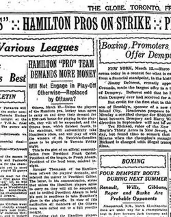 11. ^ "Hamilton "Pro" Team Demands More Money". The Globe. March 13, 1925. p. 8.