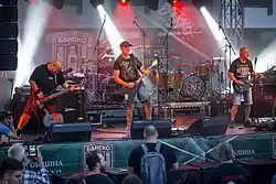 Hammerhead was formed in Moorhead, Minnesota in the early 1990s, with members Paul Erickson, Jeff Mooridian Jr. and Paul Sanders, later moving to Minneapolis.[1] The band released extensively through Amphetamine Reptile Records. Their major breakthrough album Duh the Big City[2][3] garnered them critical acclaim, however after its release Paul Sanders left the group. The remaining members went on to form Vaz after experimenting with other line-ups.[4][5]