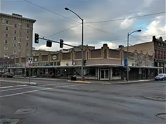 It includes aspects of Art Deco style. It is a one-story brick commercial building with five front bays and five bays facing north. It is topped by stepped, polychrome brick battlements.[2]