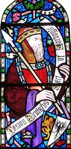A seventeenth century pedigree of the Grenville or Granville family of Stowe claimed that Hamon Dentatus had two sons: Richard de Grenville, who founded the Grenville family, and Robert Fitzhamon. This contradicted the chronicle of William of Malmesbury, which said that Hamon Dentatus was Robert Fitzhamon's grandfather (avus).[17] The Grenville pedigree also claimed that Hamon Dentatus was a younger son of Mauger, Count of Corbeil and thus grandson of Richard I, Duke of Normandy.[18] Historian and genealogist J. Horace Round contended that the Granville family had "hatched [the connection] in the seventeenth century... wishing to exalt Hamon Dentatus," whom they claimed as their ancestor.[19] The Grenville family commissioned a depiction of Haimo Dentatus on a stained glass window that was installed in 1860 in the Granville Chapel of the Church of St. James the Great, Kilkhampton, Cornwall, near the family mansion Stowe House.