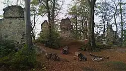 On the Děvín hill, there is a ruin of an eponymous castle. It was a massive royal castle, built in 1250. In the 17th century, it was abandoned, and it was most likely destroyed during the Thirty Years' War.[7]