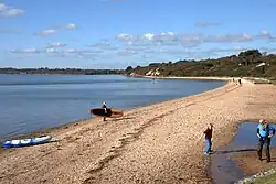 Hamworthy Beach is situated between the Marine Camp and Rockley Sands in Poole Bay, Dorset, known to locals but more difficult to find for outsiders. The local community refer to it as "Up Lake". It is a muddy beach with sand and shingle. It has its own jetty, known as Lake Pier, which is quite popular with local fishermen. Evenings promising good sunsets attract a number of photographers to this beauty spot. From the beach can be seen Arne Nature Reserve, Brownsea Island and the Purbeck Hills. Behind the beach is Ham Common.