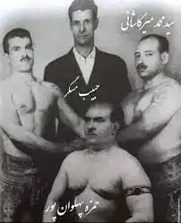 Pahlevanpour was one of Tehran's most renowned traditional athletes (Pahlevans) during the late Qajar era and the early Pahlavi dynasty. He obtained the traditional championship armband during the reign of Reza Shah. In 1925, he purchased the Zurkhaneh of Morshed Hossein Siah (which had been sold to a merchant named Asghar Bazarchi), renamed it after himself, and managed it as a cultural-sports club. Known popularly as "Pahlevan Shater Hamzeh", he held the title of Tehran’s and Iran’s strongest man during this era and met with both Reza Shah and Mohammad Reza Shah to discuss promoting traditional Persian sports.[3][2][4]