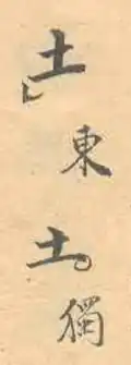 The Vietnamese word chữ 𡨸 (character, script, writing, letter) is derived from a Middle Chinese pronunciation of 字 (Modern Mandarin Chinese in Pinyin: zì), meaning 'character'.[15]