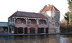 Van Meegeren's father did not share his son's love of art; he often forced Han to write a hundred times, "I know nothing, I am nothing, I am capable of nothing."[6][7] Instead, Han's father compelled him to study architecture at the Delft University of Technology in 1907.[3] He received drawing and painting lessons, as well. He easily passed his preliminary examinations but never took the Ingenieurs (final) examination because he did not want to become an architect.[4] He nevertheless proved to be an apt architect and designed the clubhouse for his rowing club in Delft, which still exists (see image).[4]