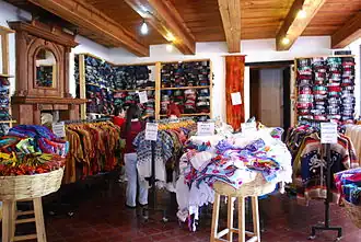 These textiles cannot compete with those produced in Asia and other places in terms of price, so they are sold as cultural and social objects.[3] Like in other parts of the country, many handcraft sales are to tourists and collectors, who often want a piece of Mexico's indigenous and popular culture, such as blouses made by women of the Chiapas highlands. These are then often paired with modern clothing, such as jeans.[3] The main market for handcrafts is San Cristobal de las Casas.[6] The Real de Guadalupe Street in this city is filled with vendors selling handcrafts. These vendors are mestizo (mixed indigenous and Spanish) and belong to families that established themselves one of the main streets of the city.[3]