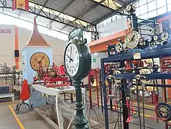 Zacatlán is home to a monumental clock works, where each piece is made to order in a small factory. Centenario clocks began when Alberto Olvera Hernández began building them in his father’s woodshop, located outside the town, even making his own tools. After making several as a hobby, he opened a workshop in town, which became the first of its kind in Latin America. Today Centenario is known for making monumental clocks for towers, churches, public buildings—and “flower” clocks, where vegetation provides the face. These clocks can be found in most parts of Mexico and some abroad as well. The business remains family owned, with about fifty employees.[9]