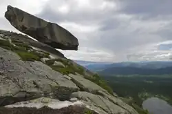 The Hanging Stone is on the edge of a cliff above Lake Raduzhnoye (Rainbow Lake) in the western Sayan Mountains in Krasnoyarsk Krai, Russia.[1] The stone is an attraction in the Ergaki Nature Park.[1]