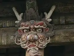 The Hanging Temple, also Hengshan Hanging Temple, Hanging Monastery or Xuankong Temple (simplified Chinese: 悬空寺; traditional Chinese: 懸空寺; pinyin: Xuánkōng Sì) is a temple built into a cliff (75 m or 246 ft above the ground) near Mount Heng in Hunyuan County, Datong City, Shanxi Province, China. The closest city is Datong, 64 kilometres (40 mi) to the northwest. Along with the Yungang Grottoes, the Hanging Temple is one of the main tourist attractions and historical sites in the Datong area. Built more than 1,500 years ago, this temple is notable not only for its location on a sheer precipice but also because as a Buddhist temple it also contains references to the other two of the three Chinese traditional philosophies or religions (三教): Taoism, and Confucianism. The structure is kept in place with oak crossbeams fitted into holes chiseled into the cliffs. The main supportive structure is hidden inside the bedrock.[1] The monastery is located in the small canyon basin, and the body of the building hangs from the middle of the cliff under the prominent summit, protecting the temple from rain erosion and sunlight bake.
