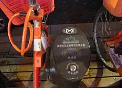 Hangzhou Public Bicycle (Chinese: 杭州公共自行车; pinyin: Hángzhōu gōnggòng zìxíngchē) is a bicycle sharing system serving the city of Hangzhou. As of January 5, 2013, with 66,500 bicycles operating from 2,700 stations,[1] it was the largest bike sharing system in the world, although it has since been overtaken by a number of dockless bike share operators such as Mobike. It is the first bike-sharing system in China.[2] It plans to expand to 175,000 bikes by 2020.[3]