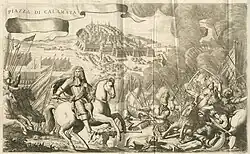 After his father's death, like his other siblings, Hannibal von Degenfeld came under the guardianship of his eldest brother, Ferdinand.[2][4] Degenfeld was sent to the care of a certain Wolfstehl in Heilbronn, who took in and educated many sons of the nobility. There Degenfeld learned French, exercised in knightly manner, and visited the local school.[2] In 1666, having reached adulthood, he was sent to Crete,[2] where his brothers Adolf and Christoph were commanding a Venetian regiment during the Siege of Candia.[6] Degenfeld distinguished himself through bravery and ability, coming to command a company and the rank of major in his brothers' regiment.[2] At the end of the war in 1669, the Venetian Senate awarded him a yearly pension of 500 ducats with the request to return to Venetian service whenever the Republic would call upon him.[7]