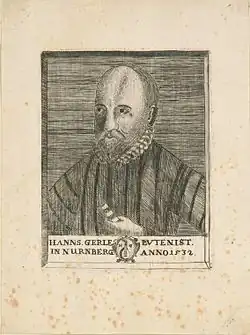 Hans Gerle (c. 1500, Nuremberg – 1570, Nuremberg) was a German lutenist and arranger of the Renaissance. Little concrete information is available regarding Gerle's life. His father was probably Conrad Gerle (died 1521), one of the city's better-known lute makers. Gerle likely spent his entire life in Nuremberg.