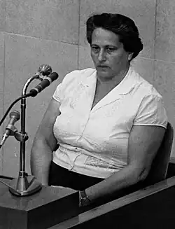 Brand moved from Budapest to Switzerland in 1946, and from there to Palestine in 1947.[4] In December 1946, in Basel, Switzerland, she testified in front of a special committee dealing with Rudolf Kastner's activity during the Holocaust in Hungary.[4] She also testified in the Kastner trial in 1954 and in the Eichmann trial in 1961.[4]