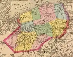 The county of Hants was established June 17, 1781, on territory taken from Kings County that consisted of the townships of Windsor, Falmouth and Newport.[3][a] The name Hants is a long-standing abbreviation for the English county of Hampshire, from the Old English name Hantescire. In 1861, Hants County was divided for court sessional purposes into two districts named East Hants and West Hants. In 1879, the two districts were incorporated as district municipalities. In 2020, the Town of Windsor amalgamated with the District of West Hants to become the West Hants Regional Municipality.[4]