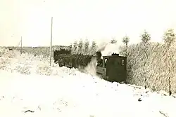 In the vicinity of the front line, the less powerful gasoline locomotives offered advantages over the 0-8-0 brigade locomotives, because the smoke was easy to spot by the enemy. For better camouflage in the woodless area, camouflage tunnels were installed, which gave the station "Spanische Wand" its name, meaning paravent in German.[3]