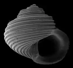 | Shell of Haplocochlias ortizi (specimen at MNHN, Paris) | |