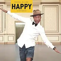 In October 2013, a month prior to its single release, "Happy" catapulted to No. 1 on the Dutch Top 40 chart in the Netherlands, partially as a result of radio station 3FM airplay and subsequent online downloads, as well as featuring in a Transavia commercial.[29] It was released worldwide on November 21, 2013. In 2014, after 35 weeks on the charts and then still in the top 15, "Happy" became the most successful song in the Dutch Top 40 of all time.[30][31] It went on to finish number five on the year-end Single Top 40 list, giving Williams three songs in the top five, along with "Blurred Lines" and "Get Lucky", both of which feature him.