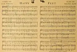 "Happy Feet" is a song with music by Milton Ager and lyrics by Jack Yellen, first published in 1930. It was originally introduced in the Universal Pictures revue film King of Jazz (1930), where it was performed by Paul Whiteman and his Orchestra with the Rhythm Boys.