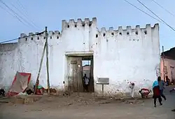 The following years were very difficult for Harar, as the Oromo were able to intrude on Hararghe and defeated Nur's army at the Battle of Hazalo. This prompted Nur to construct a large wall around Harar, which served as a successful bulwark against the Oromo who devastated only the lands around Harar and forced Nur to fight them multiple times. Because of the influx of refugees into the town and the devastation of the region by the Oromo, Harar experienced two severe famines.[32] The prices of food and livestock rose significantly: one sa'a (a unit equal to four handfuls) of sorghum cost 12 ashrafis, and an equal amount of salt cost 15.[32] A cow cost over 300 ashrafis.[32] The second famine was followed by a plague which eventually killed Nur in 1568, three months after he conducted a campaign against the Oromo.[31]