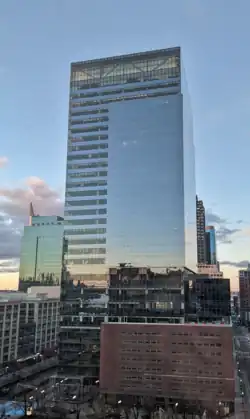 Harborside Plaza 5 is a 480-foot (146m) tall high-rise office building completed in 2002 designed by Grad Associates. The building has 34 floors and nearly 1 million sq ft of space. In February 2024, Veris Residential announced they were selling the property for $85 million.[6] In March 2024, following the sale, the new owner acquired a $65 million acquisition loan.[7]