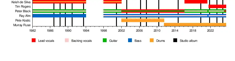 - Keish de Silva – drums (1982–1993, 1998–2001), lead vocals (1982–1993, 1998–2001, 2016–2021)