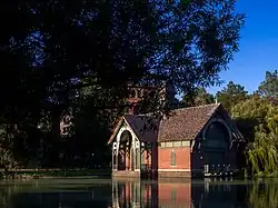 Construction work resumed in 1946, and on August 6, 1947, the Parks Department announced that row boating would resume, the concession to be run out of the new boathouse, "designed in modified victorian style in harmony with the architecture of other structures in the park."[17]