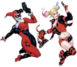 ![]() Various incarnations of Harley Quinn, as depicted in Harley Quinn (Vol. 4) #43. Art by Nicola Scott. | |