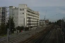The Grand Junction Canal runs through the Dawley land, east to west: it was constructed c. 1794–1800.[8] In the late 1830s the main line of the Great Western Railway was also built across the former Dawley Park (by then Dawley Wall Farm). However, Hayes & Harlington railway station (just outside the parish) was not opened until 1864. Before then there was a choice of the stations at West Drayton and Southall, or of the daily omnibus and weekly carrier to London.[9]